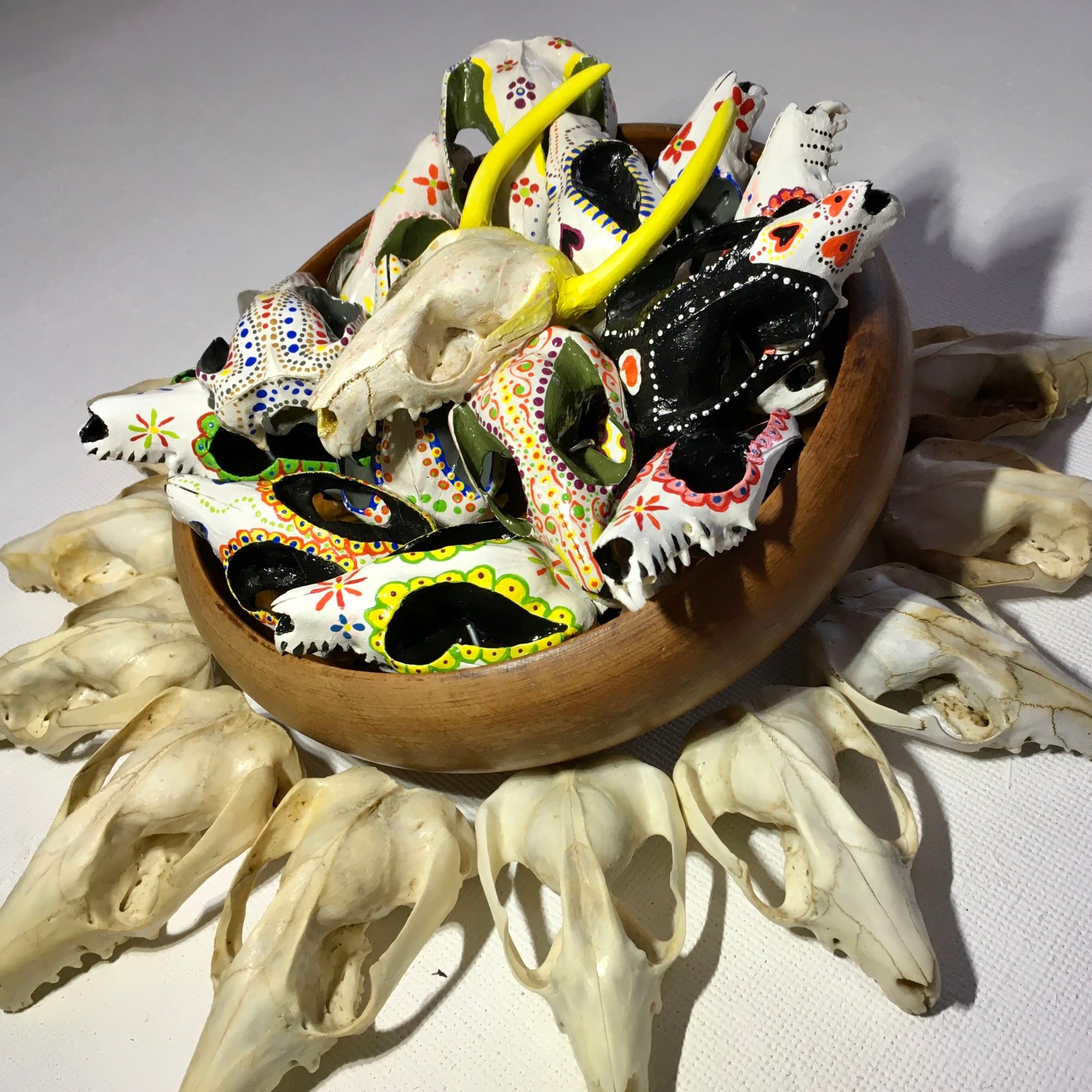 I volunteer with Bay Bush Action and spend time in the bush clearing traplines of some of New Zealand’s most harmful introduced pests to our native flora and fauna. This activity also supplies me with a great number of skulls and bones from which I am able create some of my art.